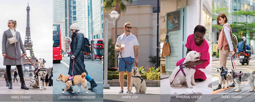 Julius-K9-Geschirre mit mehreren Auswahlmöglichkeiten je nach Hauptaktivität des Hundes: das neue Y-Geschirr JK9®GO mit Antizug-Funktion für alle Hunde, das IDC®Powergeschirr für Spaziergänge in der Stadt, das leichte und schnell trocknende IDC®Powair-Powergeschirr